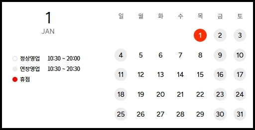 1월 휴무는 1월 1일 하루 뿐입니다.